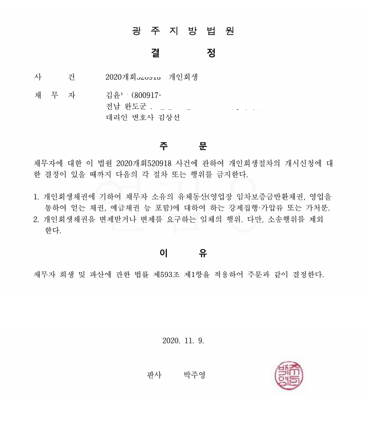 2020년 11월 5일 신청하여 2020년 11월 9일 금지명령이 결정되었습니다.