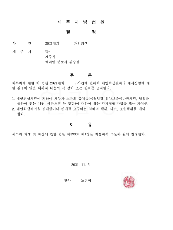 [개시결정] 신청인 김** 서울회생법원